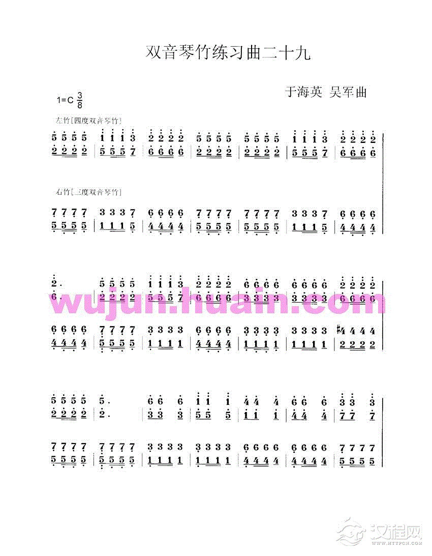 曲谱大全扬琴双音琴竹练习曲30首之二十