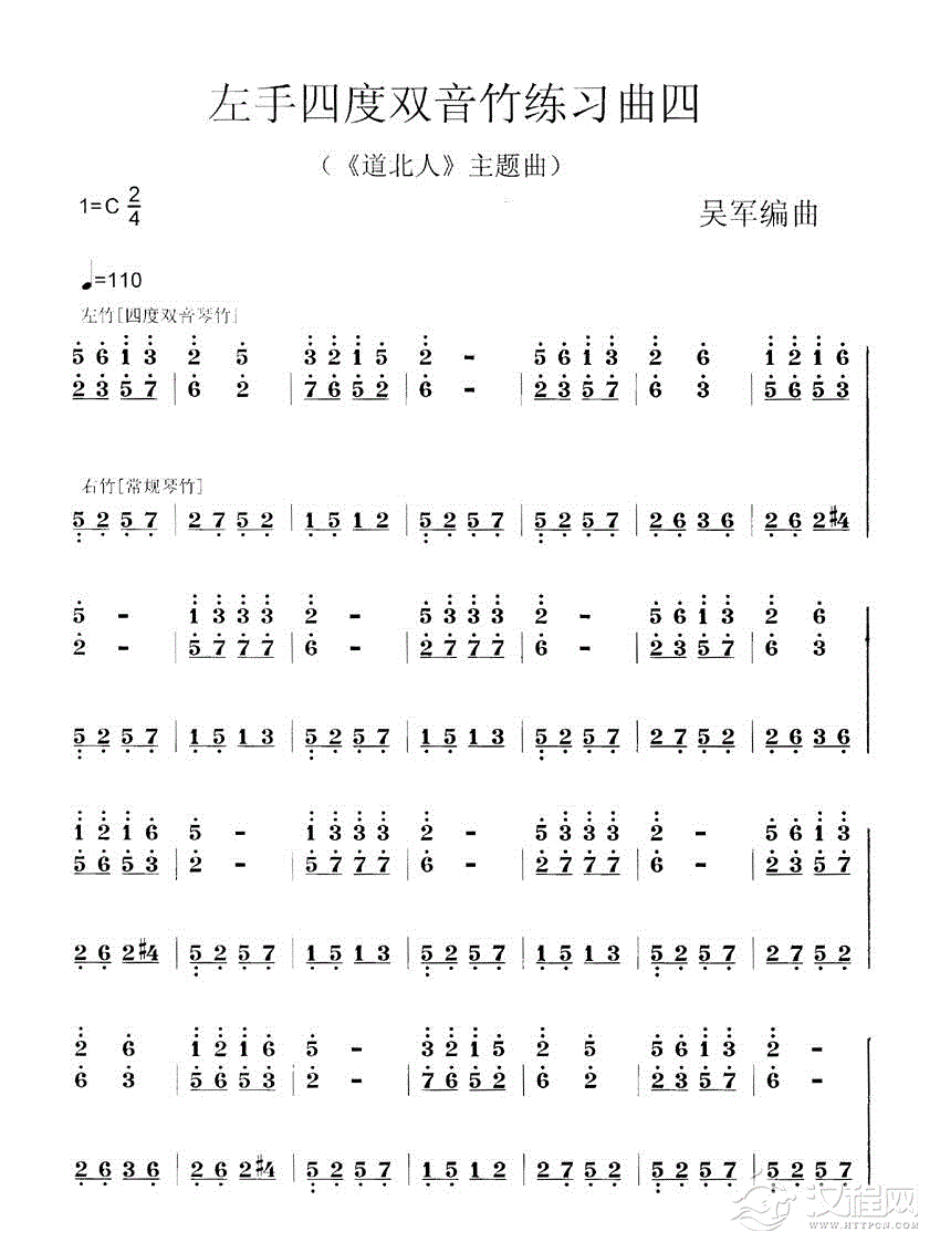 曲谱大全左手四度双音竹练习曲一