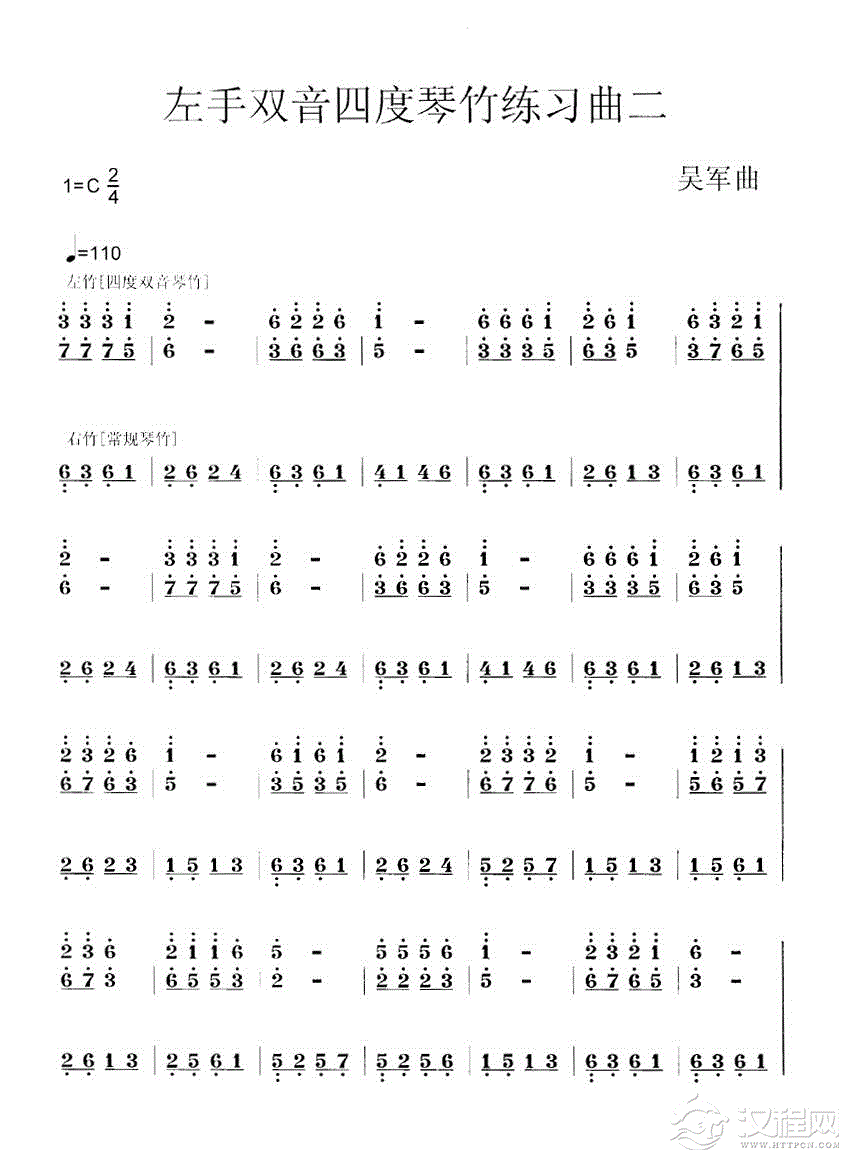 曲谱大全左手四度双音竹练习曲四 [共2张]