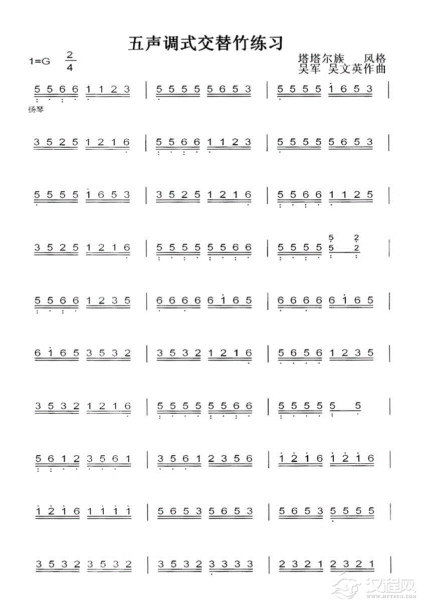 曲谱大全左手双音四度琴竹练习曲二 [共2张]