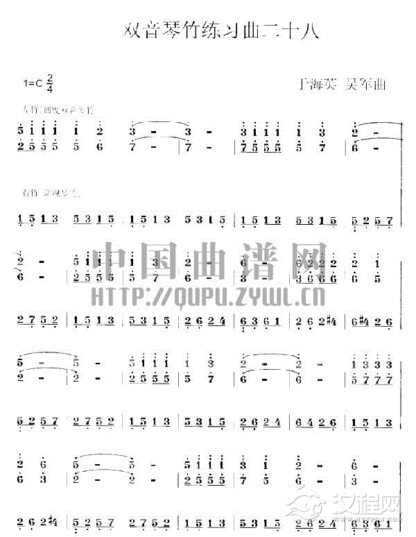 曲谱大全扬琴双音琴竹练习曲30首之二