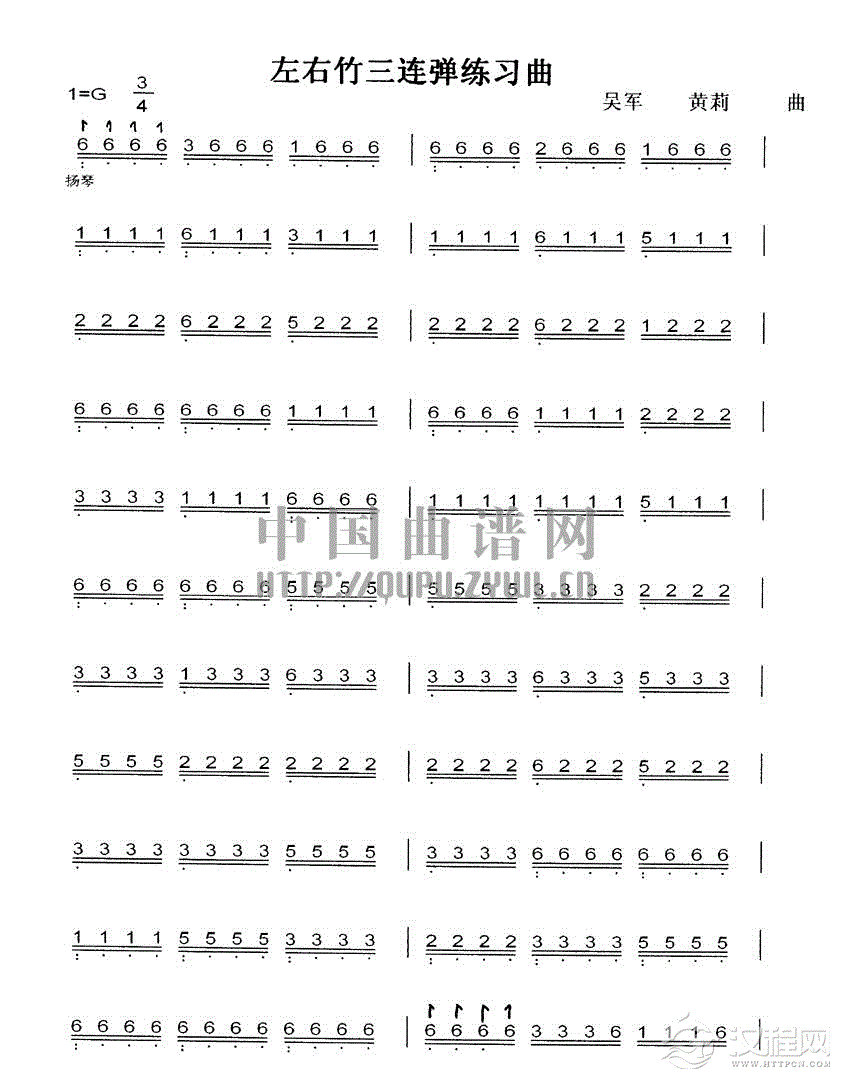 曲谱大全扬琴双音琴竹练习曲30首之二十