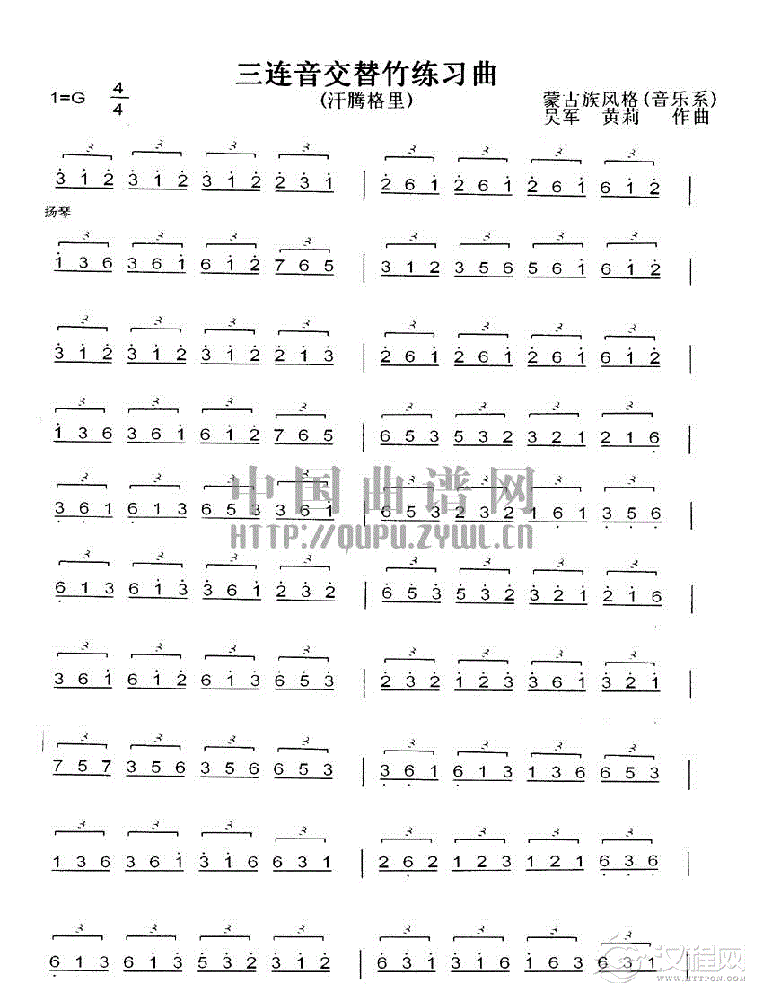 曲谱大全扬琴双音琴竹练习曲30首之一