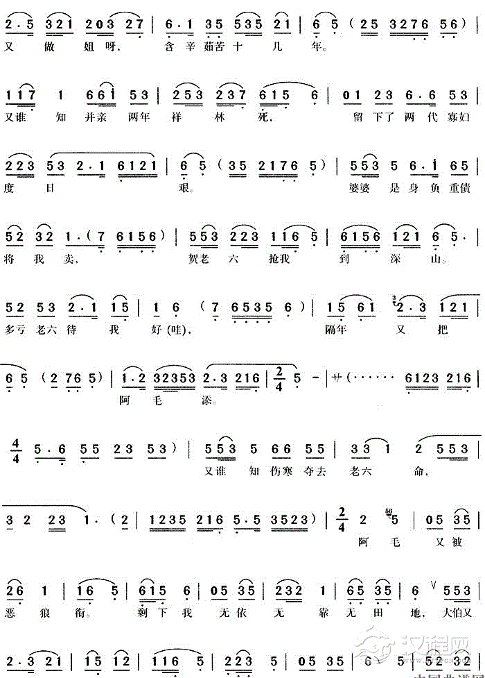 戏曲曲谱大句句双_东北秧歌曲牌(二人转伴奏简谱)