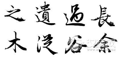 较之平捺的写法,斜捺在写法上丰富了许多,有一波三折者,如附图中“长”字;有轻入空收、含蓄蕴藉者,如“木”字;有逆笔涩进、隶意盎然者,如“从”字;有收锋抵腕,锋芒毕露者,如“谷”字;有回锋映带,笔断意连者,如“余”字。