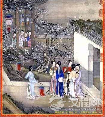 正月里,上元之夜,华灯溢彩,银月似盘,梅花绽放,宫中贵妇们结伴游赏。