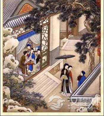 腊月中,天寒地冻,贵妇们聚于温暖的厅堂中,衣边烹茶,衣边观雪,吟诗作乐,时有女伴裘衣貂帽,踏雪携,前来助兴。