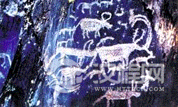 在南系岩画的十几个地点,共有图形一千多个。这些岩画表现了人们祭祀以及生产生活的场面。南系岩画普遍用红色涂染,这同原始艺术中习惯使用红色的现象是一致的。原始人在他们频繁的狩猎和战争活动中,鲜血不断地刺激他们的视觉神经,导致红色在视觉中的稳定性。红色那炽热的调子和生命之火相呼应,使岩画获得了无限的生命展现,当红色置于某种祭祀仪式氛围中,红色和血色,使岩画产生强烈的刺激效果,从而具有了一定的恐惧感、神秘感。