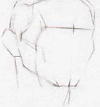 第二步: 用辅助线测定形体的比例, 透视和倾斜度, 确定大的形体特征。