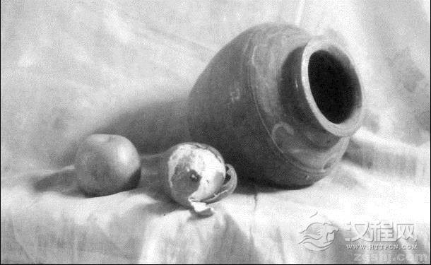 1:罐子和水果基本呈三角形,在构图时轻轻定出三角形的位置,这些物体不超过三角形的大范围,注意比例和透视关系。大体定出台面与衬布的位置形状,轮廓线不要太重!
