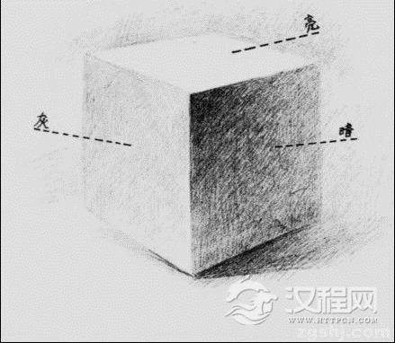 1:受光面(亮面):是物体受光线90度直射的地方,这部分受光最大,调子淡,亮部的受光焦点叫“高光”,一般只有光滑的物体才能出现。