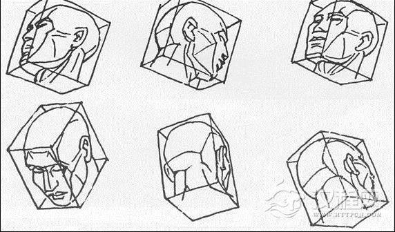 人物头像....由脸部、五官、颈部等组成,而脸部又有不同的形状,有人把他区分为“田、由、国、用、目、甲、风、申”等字型,这些形态主要是由人物头部的骨骼所决定的。因此在画头像时,先要把