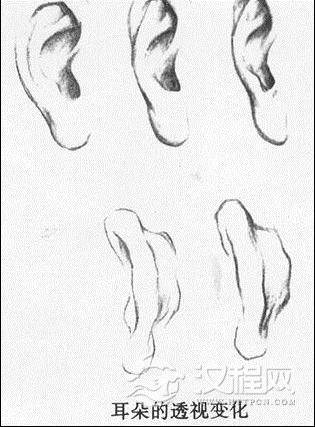 耳朵的结构主要由外耳轮、耳屏、三角窝、耳垂等组成。耳在五官中处于不太重要的位置,它在脸的两旁,但初学者也要加以了解,熟悉耳朵的结构,概括地画出耳朵的形状、大小、比例等。