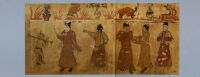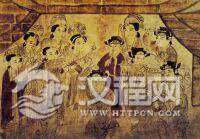 寺庙壁画中常常有奏乐的场面出现。北宋画院待诏高益就曾在东京大相国寺画有“供献乐部”壁画一堵(见宋·孟元老《东京梦华录》卷三),当时人沈括称赞说:“相国寺旧画壁乃高益之笔,有画众工奏乐一堵,最有意。”(《梦溪笔谈》卷十七)壁画图绘奏乐场面,是象征着庙里的祭祀仪式。宋元时期祭祀雅乐多由俗乐(包括戏曲演出)代替,故而神庙壁画里也就出现了优戏场面。例如宋·李新《跨鳌集》卷十六《潼川二顾相公祠重画记》说,他曾于北宋大观初年进二顾祠,“周揽四阿,循墙而趋,粉垩图绘,皆作伶官弄臣像。”又如元《至顺镇江志》卷八载,县治东北二里有东岳庙,北宋创建,其中“壁画乃大观四年名笔所画,仪卫优伶衣冠器杖皆极精妙”。这两处优人壁画都绘自北宋末的大观年间(1107~1110年),此时恰恰是宋杂剧兴盛之时。如果说,这些资料还没有明确指示为优戏演出,那么,南宋范成大《骖鸾录》所记在湖南衡山南岳庙看到的壁画,则是确凿的证据了:“自宴乐、优戏、琴奕、图书、弋钓、纫织,下至捣练、汲井,凡宫中四时行乐作务,粲然毕陈。”可惜,这些壁画今天都已经无从得见了。
