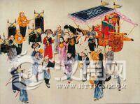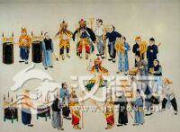 民间社火中有一项极其流行的内容为台阁,从京津、山陕到四川以及江南都见到它的踪影。台阁兴起于宋,宋·周密《武林旧事》卷三“迎新”条说:“以木庆铁擎为仙佛鬼神之类,驾空飞动,谓之台阁。杂剧百戏诸艺之外,又为渔父习闲、竹马出猎、八仙故事。”台阁上能够装扮各种戏曲故事,大概是民间喜爱它的原因之一。明·刘侗《帝京景物略·弘仁桥》记北京的台阁说:“夸儇者为台阁。铁杆数丈,曲折成势,饰楼阁崖木云烟形,层置四五儿婴,扮如剧演。其法:环铁约儿腰,平承儿尻,衣彩掩其外,杆暗从衣物错乱中传下。所见云梢烟缕处,空坐一儿,或儿跨象马,蹬空飘飘。道旁动色危叹,而儿坐实无少苦。”这里详细说明了台阁人物之所以能够居高持久的机械原因。