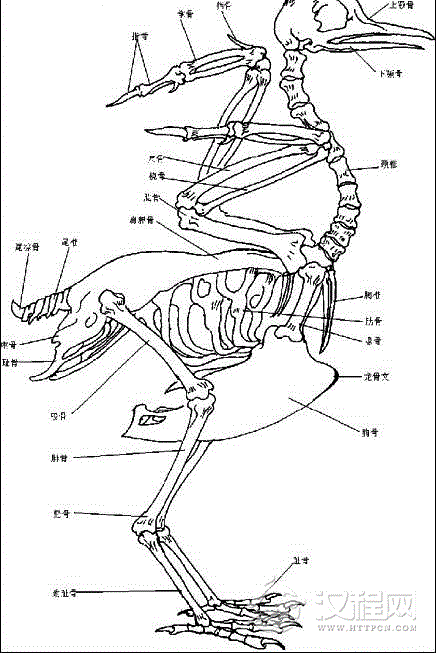 之前首先应该了解鸟类骨骼的结构和羽毛的生长规律,只有熟悉了它的各种结构关系,才能描绘出生动的形象。