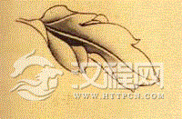碰染:有两种不同颜色,从叶子或是花瓣的两端同时染色,然后在叶或花瓣中间碰到一起,使其自然衔接,形成统一整体的方法。