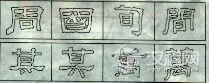 包围结构。包围式结构的处理,在《张迁碑》中,除外框的变化以外,其被包围的内容亦灵动多姿、疏密有致。图一中“周”宇,右竖曲而有力,收笔亦千脆利落,中横夸张变形,其下之“口”虽稍侧但稳健。“国”字四面包围,但两竖相向而立,均有斜势,内部之“或”虽朴茂但也有空白处,可谓朴茂中见空灵。“旬”字整体有向右下倾斜之势,但曲而有力的横折钩,使中间的“闩”像镶上的明珠一样夺目动人。“间”字左竖撇曲而灵动,右竖斜而朴拙,左右形成鲜明对比,而又在对称中求变化,中间的“日”纯取斜势,以呼应左右的欹侧之势,整个字斜而不倒,耐人寻味。《张迁碑》“辶”的写法,也显现出空灵与厚重的浑然一体,再加上被包围的内容疏密、方圆的处理,使字之神态跃然纸上。