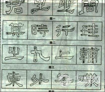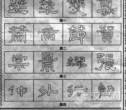 同字异形。《张迁碑》中相同的字较多,但几乎无一在用笔、结字—仁不精心安排,或方圆、或粗细、或欹侧,或有出锋藏锋之别,或有同旁异形之变,极尽变化,如图二中“其”、“万”等。这正如《兰亭序》中的“之”字一样,变化中有统一协调,浑然天戎,趣味无限。