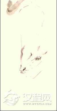步骤四 4.用赭石掺入少量淡墨点簇出马的颈与头的关系。