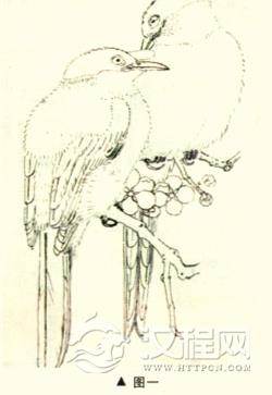 工笔设色禽鸟首先要结构清楚,钩勒丝毛要精到工细,渲染均匀自然,同时要有取舍、概括。敷色前—般有底色,各部位之间要自然衔接,外轮廓要虚实相间,上色要薄,需多次渲染完成,以期达到细腻厚重的效果,临摹可分为四步:钩线、丝毛、打底、敷色。