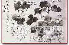 三、枝干的穿插:老干表皮粗糙,用硬毫二号斗笔正锋,侧锋转换顿挫逆行,要画得涩滞苍劲,斜欹取势,自下而上一气阿成。老干要安排二至三株,构图上才现得平稳,嫩茎中锋用笔,取光洁挺劲之势,枝干的穿插宜从构图的整体去考虑,布叶不宜过多、过密,画叶时要空出枝干穿插的空间,做到心中有数,穿插得势,疏密得宜,以少胜多。