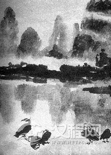 西洋油画是充分发挥油的作用,国画和水彩画都是要充分发挥水的作用,各有各的长处。在水晕墨章中,已谈了些水的效用,干、湿、浓、淡的调节全在于用水。国画要与笔、墨、纸、水打交道,在实践中要时刻总结用水量的大小和在宣纸上表现出的效果。过学称赞好的山水画"笔墨淋漓",'"元气淋漓障犹资'。(杜甫《奉先刘少府画山水障视)我们现.在看到的龚贤和石涛的某些画幅,还保持着这样的湿润感,这就在于他们已经摸到了水的''脾气"。