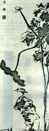 此法与米芾之米点皴有所不同,清代的沈宗骞说:“北宗多用泼墨”。但是生纸难于熟纸。生纸并不是不可以泼墨,象黄慎的人物,徐文长和陈白阳的花卉也是画在生纸上的,实际上凡是一次画成的都可以称作泼墨,二次画成的就称做积墨。泼墨画大片荷叶,笔情墨趣,跃然纸上,极为融调。请代画家朱耷擅长以泼墨画荷叶,对近代画家有巨大影响。