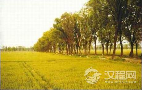 麦地与黄绿色的树木,深浅深淡没的黄、紫色块组成了一幅暖调的北国田园风光。