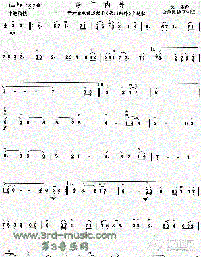 曲谱大全寒春风曲[二胡曲谱]