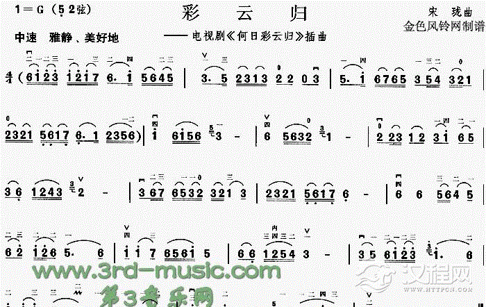 古筝谱《彩云追月》