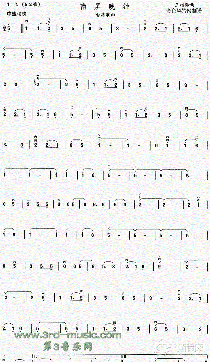 曲谱大全珍重[二胡曲谱]