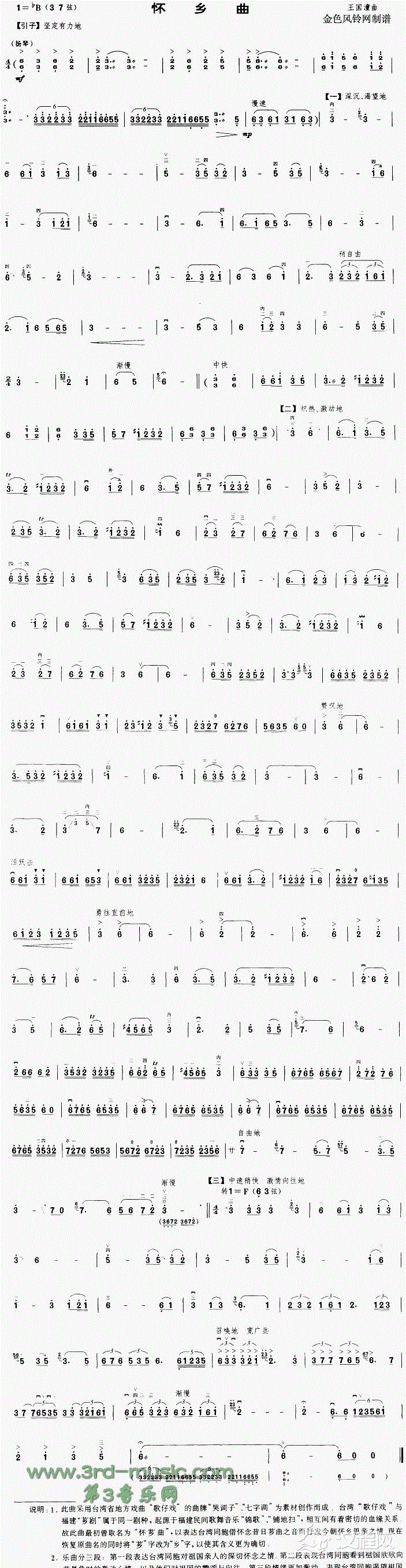 曲谱大全怀乡行[二胡曲谱]