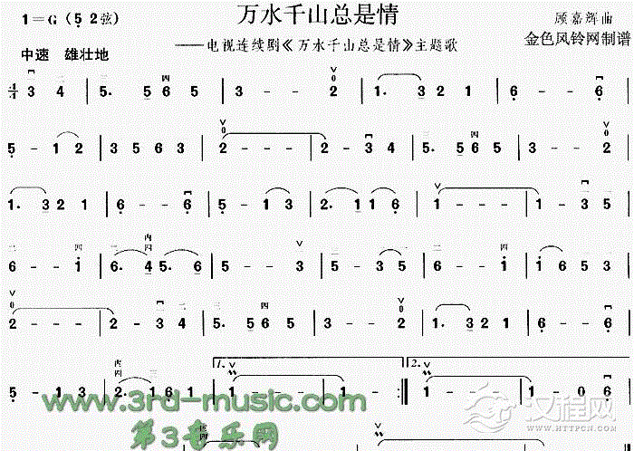曲谱大全山不转水转 (同名电视剧主题歌)[二胡曲谱]