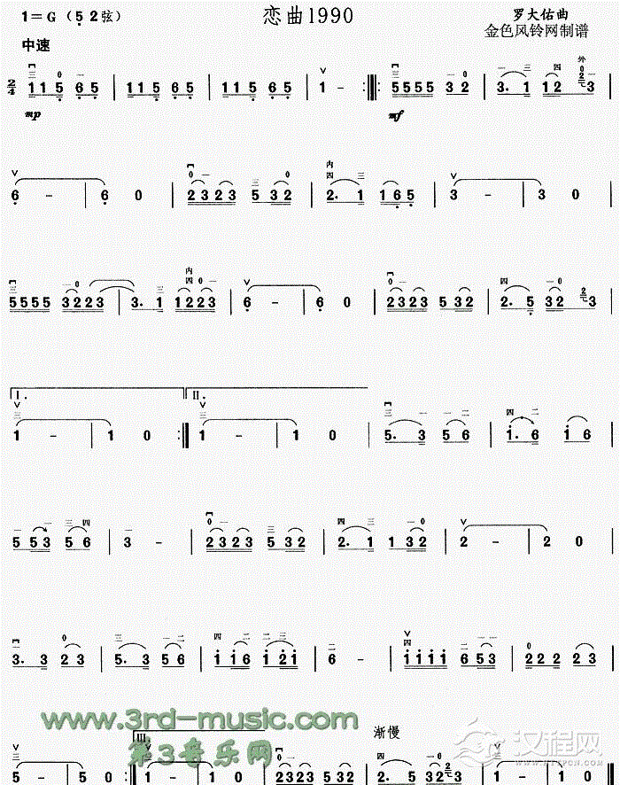 曲谱大全人间最苦是情种(《夜深沉》主题歌)[二胡曲谱]