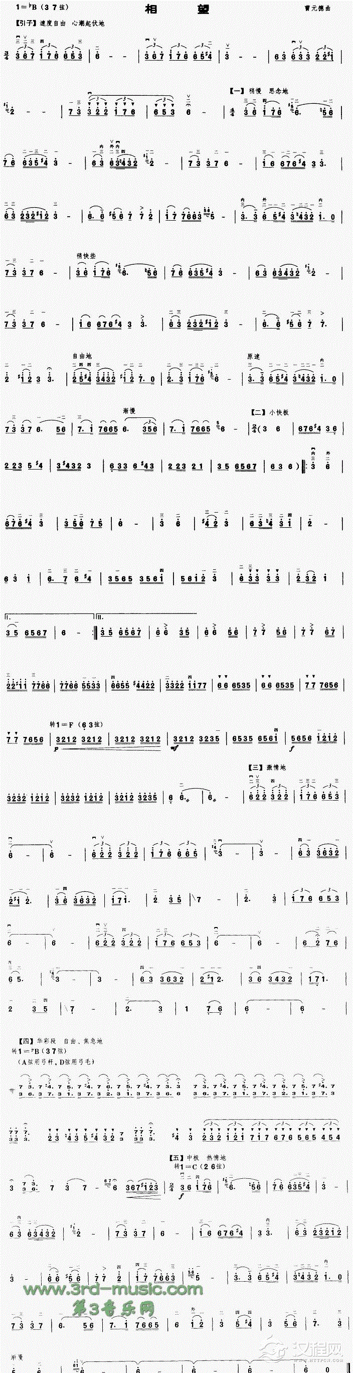 曲谱大全三门峡畅想曲[二胡曲谱]