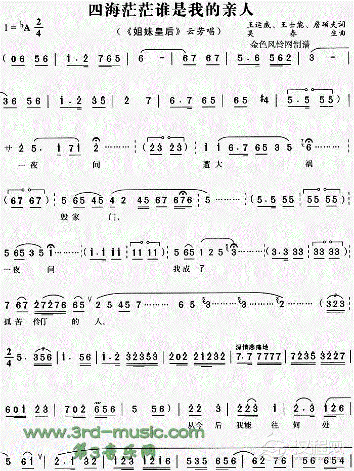 戏曲曲谱海滩别《风尘女画家》[戏曲曲谱]