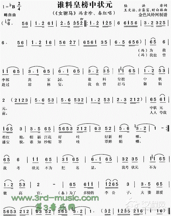 戏曲曲谱海滩别《风尘女画家》[戏曲曲谱]