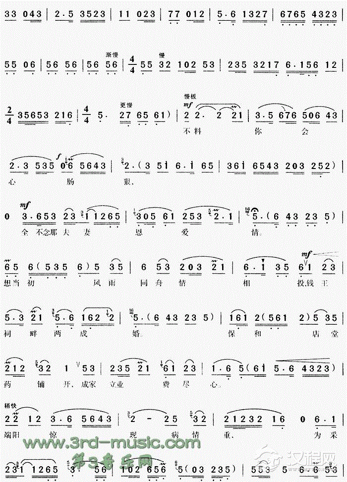 戏曲曲谱谯楼上起更鼓夜凉如水《哑女告状》[戏曲曲谱]
