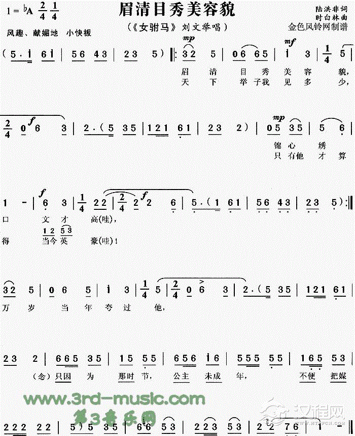 戏曲曲谱有个女孩等着你(《马骝过海》插曲)