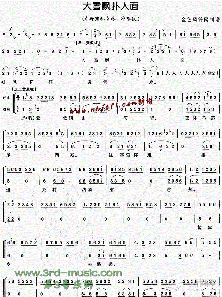 戏曲曲谱雁儿在林梢