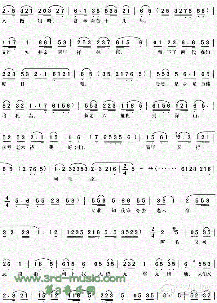 戏曲曲谱百般磨我为何情《砂子岗》[戏曲曲谱]