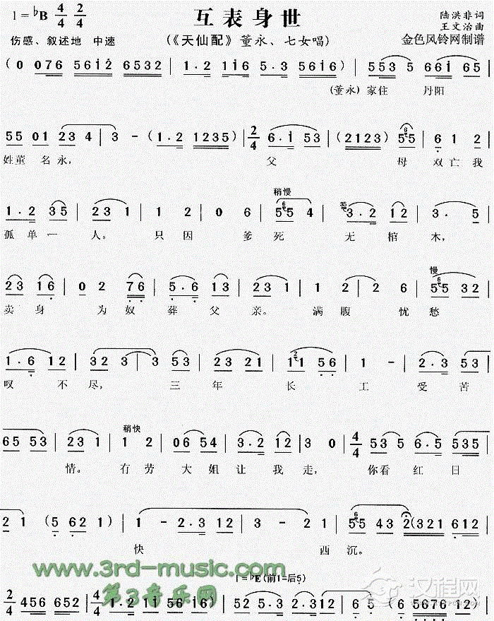 戏曲曲谱含悲忍泪《天仙配》[戏曲曲谱]