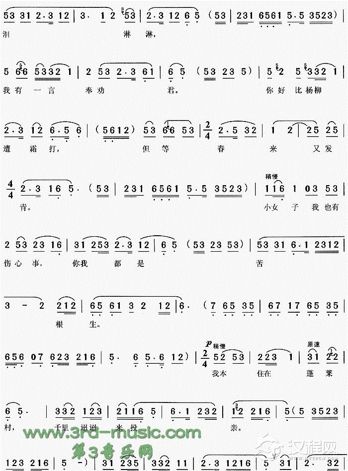 戏曲曲谱雨打农家竹篱笆[戏曲曲谱]