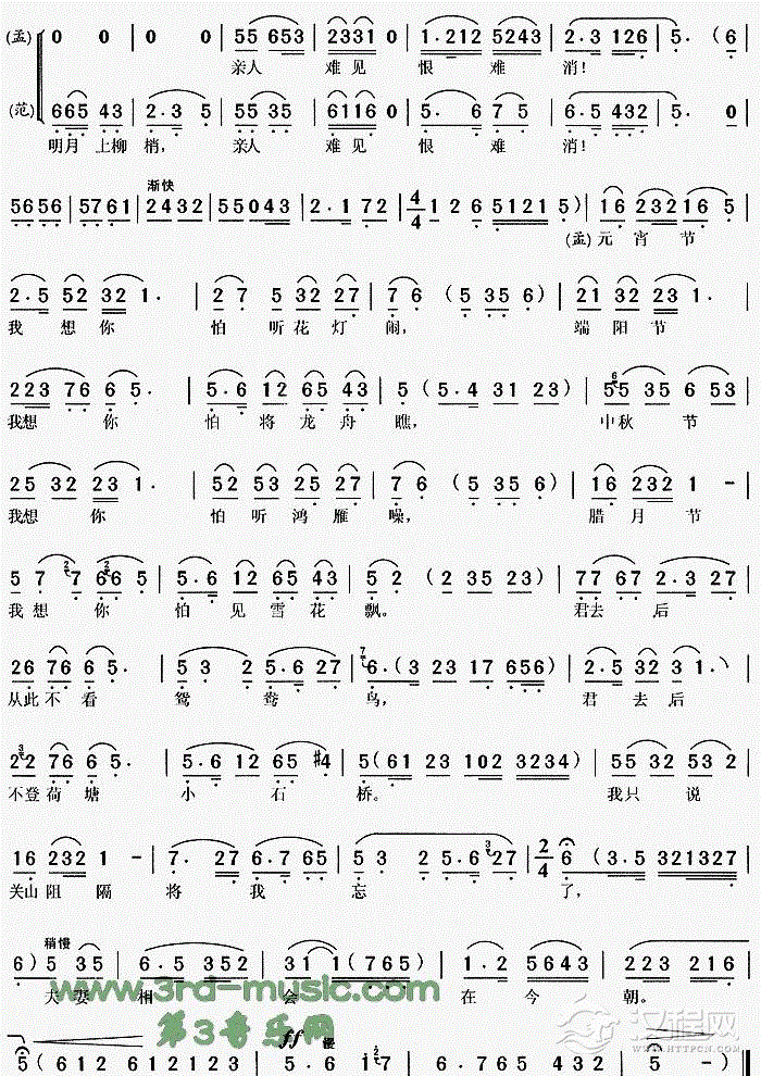 戏曲曲谱雨打农家竹篱笆[戏曲曲谱]