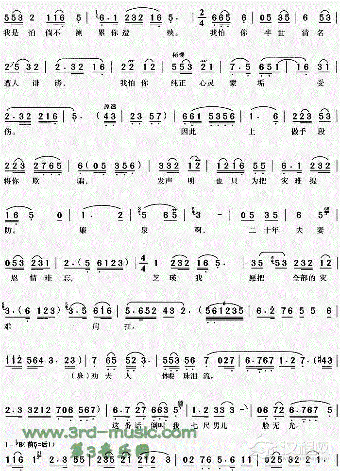 戏曲曲谱冷落为妻为哪般《碧玉簪》[戏曲曲谱]