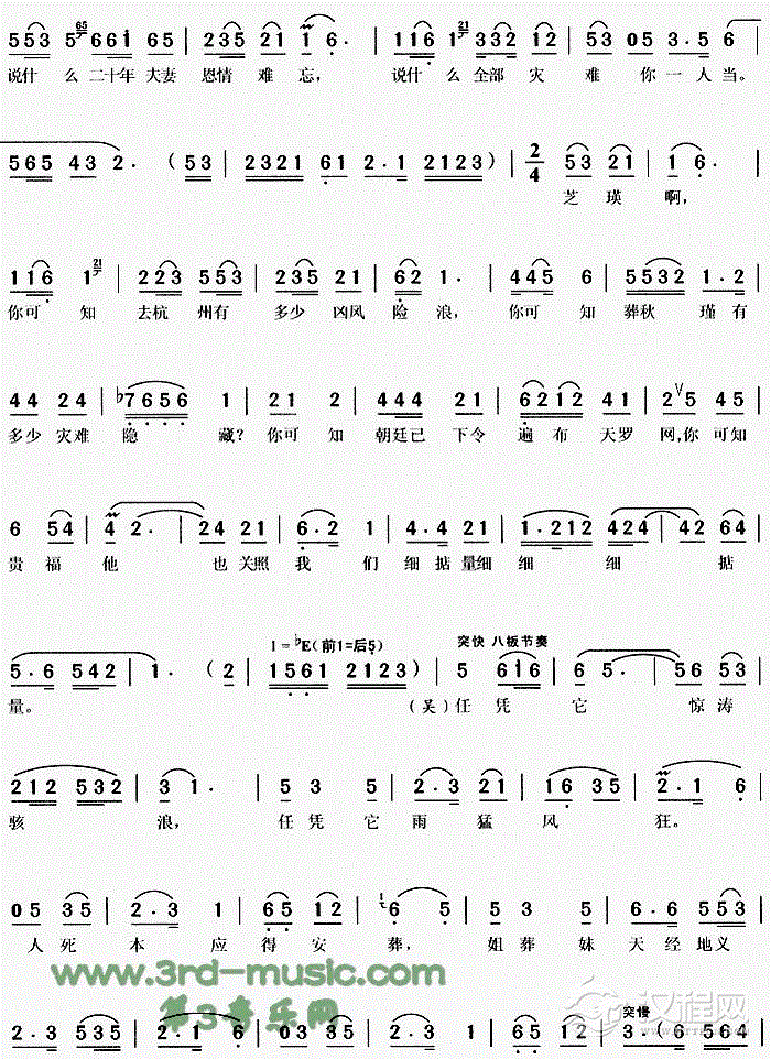 戏曲曲谱热血染红满天云《江姐》[戏曲曲谱]