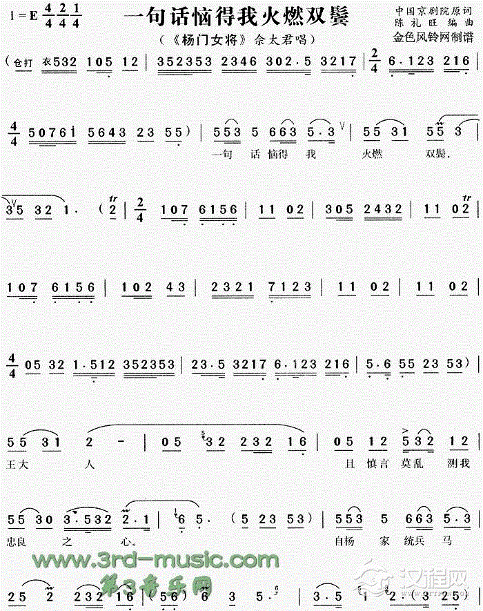 戏曲曲谱杨延辉坐宫院自思自叹《四郎探母·坐宫》[戏曲曲谱]