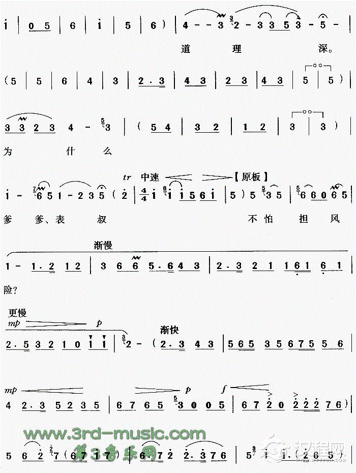 戏曲曲谱忍受饥寒无怨言 [评剧]