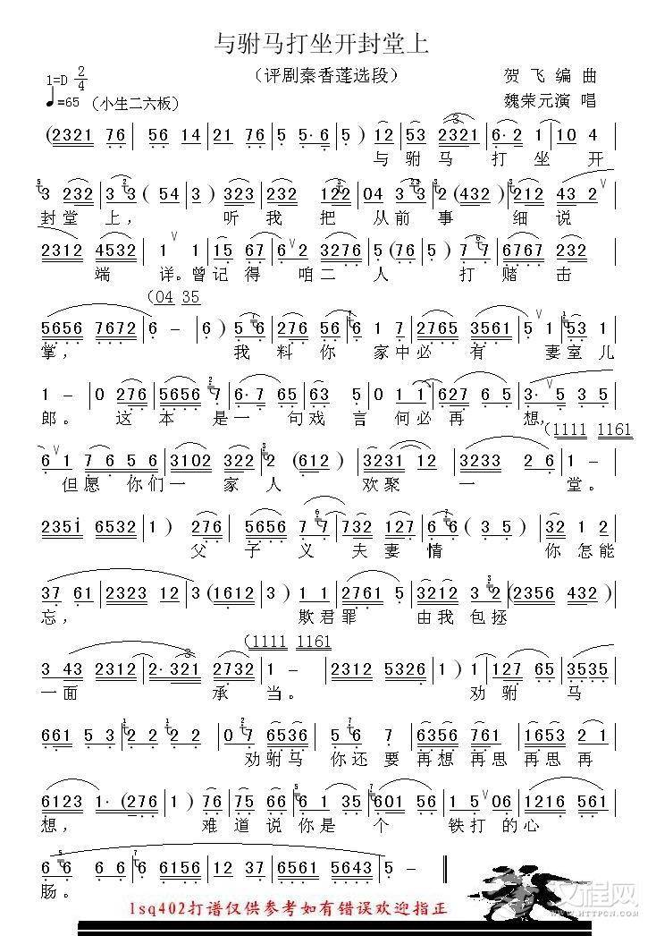 戏曲曲谱满工对唱